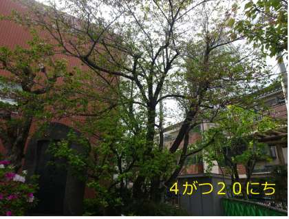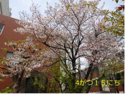 がっこうにある さくらに へんかが ありました。4がつ15にちは、さくらが きれいに さいていましたが、きょうは、はなびらが ちっていました。つぎに、さくらを みることが できるのは また らいねんです!