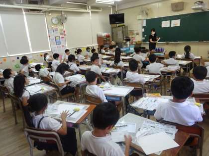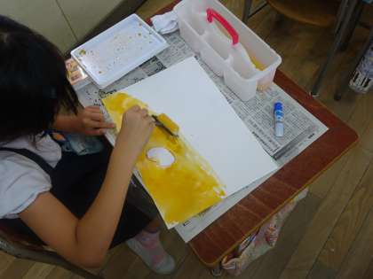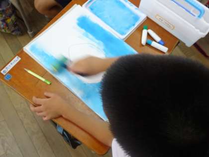 今日の5.6時間目に絵の具を使った図工をしました。今回で絵の具を使う取り組みは、二回目でしたが、準備もスムーズにでき、楽しく色を選んだり、ローラーを使って色の変化を楽しんだりする様子が多く見られました。色を重ねる子や、ローラーの使い方を工夫して色を塗る児童もいました。これからもどんどん絵の具と仲良しになっていこうという気持ちを持つことができました。