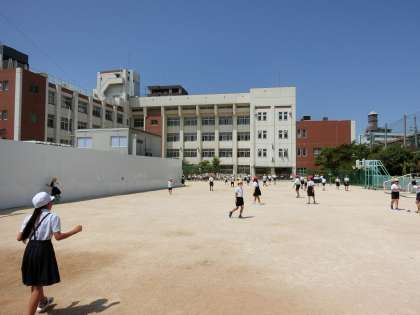 学校では校舎側をボール遊び、