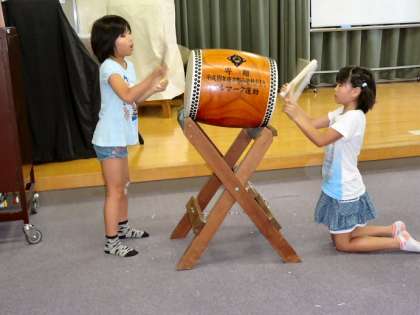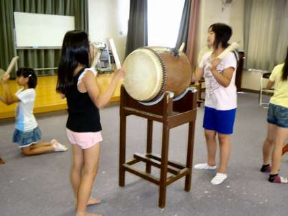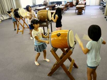 地域の盆踊りに出演するために太鼓クラブでは、太鼓の練習を一生懸命しています。練習の様子をみましたが、2時集合なのに30分以上も前から学校に来て自主練習をするぐらい意欲にあふれています。盆踊りに流れる曲を自分たちで次々かけてやっていました。真剣な顔が印象的でした。地域の盆踊りが今から楽しみです。