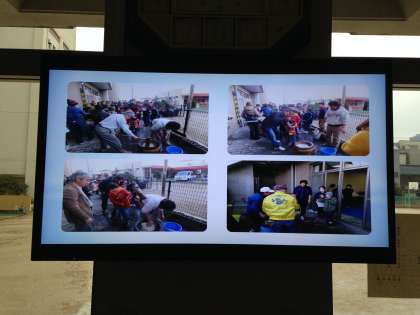 子どもの自立性を高めるため、校長経営戦略予算により購入しました玄関の大型ディスプレイで毎日、学校や地域の様子を子どもたちに伝えています。