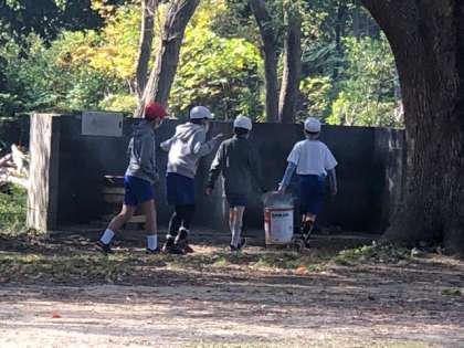 みんなで協力したので、片付けもそろそろ終わりです。天気も良く、カラスも鳴いて、のどかです。