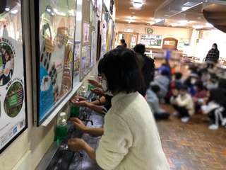 食事の前には、手洗いと消毒!