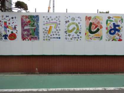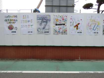 講堂工事の外壁に大きくプリントしてもらい、展示されました。