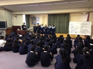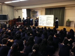 進学先の野田中学校生徒会より先輩として中学校の紹介にきてくれました。