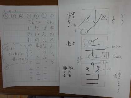 あしたは、学校を お休みしなければなりません。みなさんは、おうちでできることに とりくんでください。かん字や音読などを しゅくだいとして かんがえました。下のしゃしんのように、ていねいに ゆっくり 書いてくださいね。じかんは たっぷりありますよ。まだまだ、じかんがあるよと いう人は、ひらがなやカタカナを書いたり、読書をしたりしてみましょう。すきなえや、うつしえをしてみるのも いいですね。おうちで やってみたことを ぜひ、こんど 学校にくるときに おしえてくださいね。くれぐれも たいちょうには きをつけて くださいね。