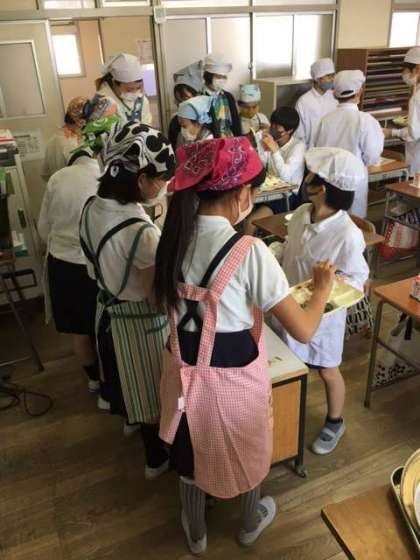 今日の給食当番は、いつも着ている白衣の洗濯ができていない、ということで、お家からエプロンを持ってきてもらいました。ご協力ありがとうございました。今日も給食時間中は、静かに前を向き、食べ終わったらすぐに、マスクをして静かに過ごしました。