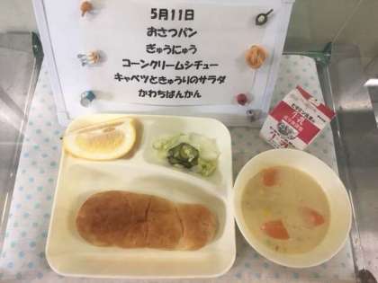 今日の給食のデザートは「かわちばんかん(河内晩柑)」でした。「かわちばんかん」は、1905年頃、熊本県河内町で、文旦(ぶんたん)から偶然発見されました。色や形はグレープフルーツに似ていますが、苦味がなく、食べやすい果物です。今日の「かわちばんかん」もとても瑞々しく美味しかったです。