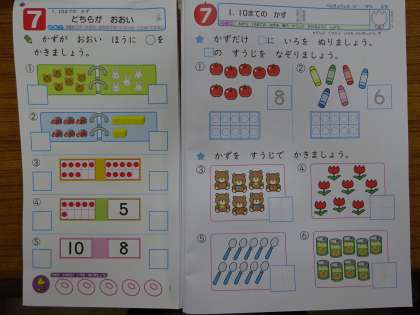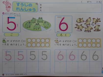 すうじのれんしゅうプリント(カラー)表が「5」「6」裏「7」「8」→3枚目の写真