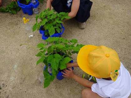 今日はあさがおの間引きと追肥をしました。