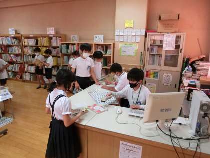 図書委員が貸し出しの手続きをしてくれます。