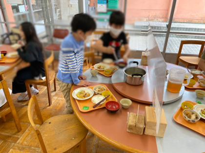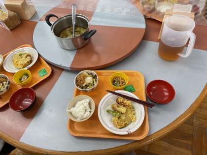 昼食です。ご飯とお味噌汁は、おかわりもできます。