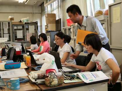 今日は、午前中に本校で職員向けにIT研修会がありました。現在もこのパソコンから吉野小学校のホームページを作成し公開していますが、それ以外にもできることを教えてくださいました。できることというのは、例えば、学校内で連絡を取り合ったり、学校外の方にお知らせしたり、出席簿を作成したりと多岐にわたりました。