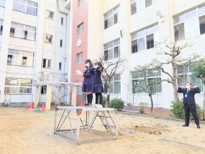 今週の児童朝会では、「肩まわし運動」を紹介して