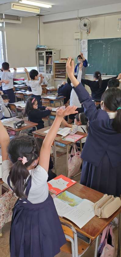 ご覧の写真は3年生が国語の学習をしている様子です。詩の中にでてくるふきのとうが芽吹くようすを動作化しています。一生懸命体で表現しようとしていて、とても素敵です。