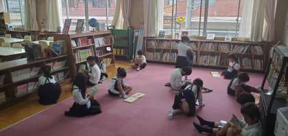 今日は雨で運動場が使えなかった事もあり、いつもよりたくさんの子どもたちが図書館で過ごしていました。