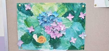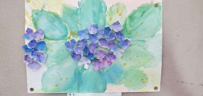 また、5年生の教室にもたくさんの紫陽花が美しく咲き誇っています。みんななかなかの腕前です。
