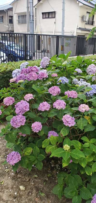 学校の西校舎裏の紫陽花が、今きれいな花を咲かせています。