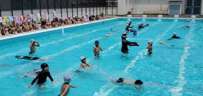 今日の2・3時間目の水遊びの様子です。今日はまだ少し肌寒いくらいでしたが、低学年の子どもたちはとってもがんばっていました。