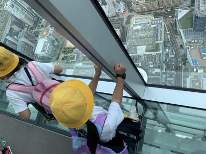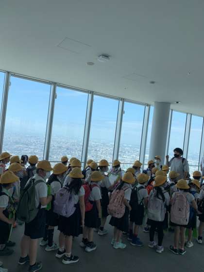 今日、3年生が社会見学に出かけました。行き先はあべのハルカスです。いいお天気になってよかったね。