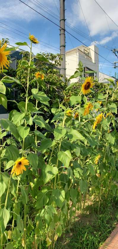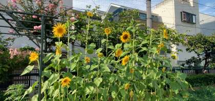 今日は学習園のひまわりの写真をアップさせていただきました。今を盛りと咲いています。