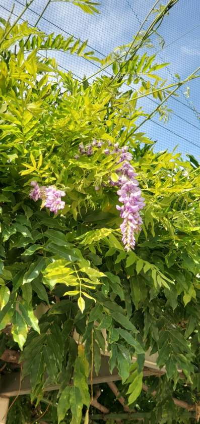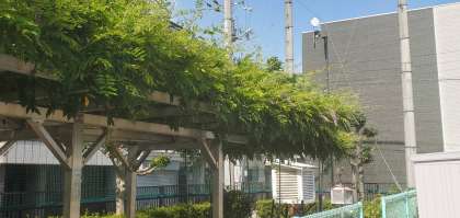 今日、校内を見回っていると、運動場の北東角の藤が少しではありますが、紫色の花を咲かせていました。こんな真夏に藤の花を見ることができるなんて思いもしなかったので、少し心が癒されました。