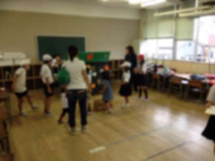 恒例の夏祭りが始まりました。今年も土曜授業で実施します。めあては、「みんなで作ろう笑顔の花さく夏祭り」です。9時5分に開会式、その後たんぽぽ班で店を回ります。講堂、各教室では、14箇所に分かれ輪投げ、ボーリング、宝探しなどの楽しいゲームがいっぱいです。しっかり楽しんでいます。