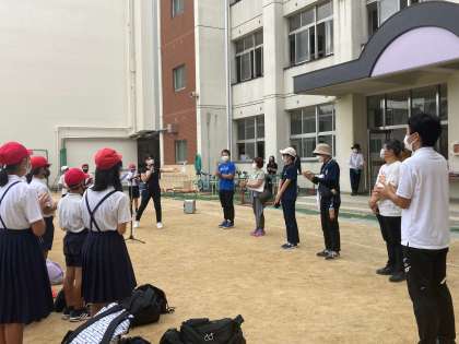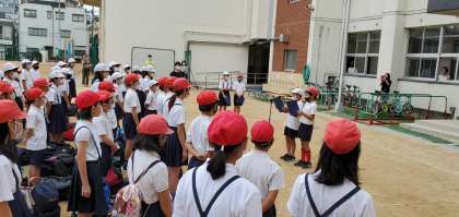 午前8時半、予定どおりの時刻に出発式を行いました。2日間、元気に楽しく過ごしまょう。