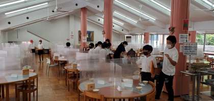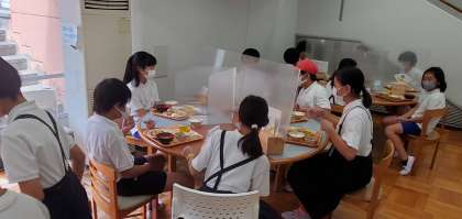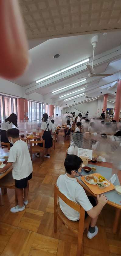 午前11時半、食堂で昼食をとっています。これから登山に出かけます。しっかり食べてね。
