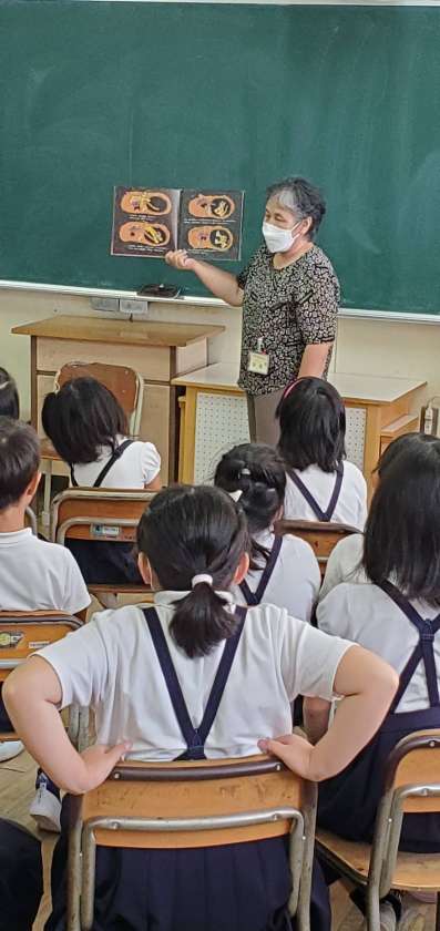 今日の2・3時間目、お話ボランティアの「マトリョーシカ」の皆様にお越しいただいておはなし会を3年ぶりに実施しました。
