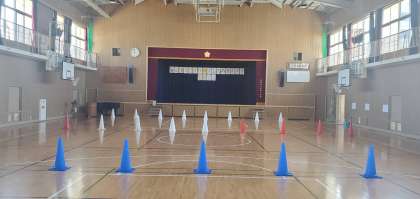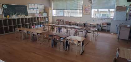 午前7時半、登校時刻前の学校内の様子です。今日は朝から「吉野子ども秋祭り」が行われます。すでにばっちり準備できています。