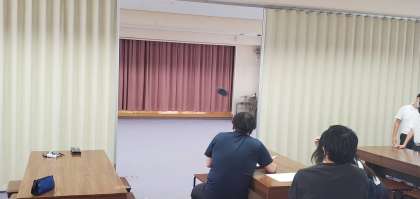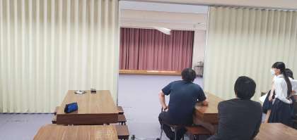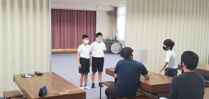 今日は音楽室からリモートで行いました。カーテンの後ろを何が通ったかを当てるゲームです。ちなみに真ん中の写真は筆箱が、一番下の写真は紙飛行機が通りすぎています。わかりにくくてすいません。