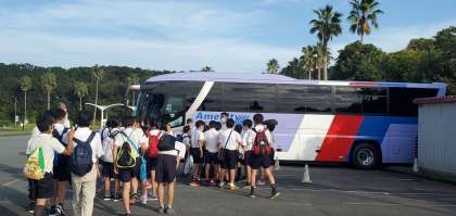 午後4時過ぎ、バスに乗り込みました。ここから宿舎までは約20分で到着します。