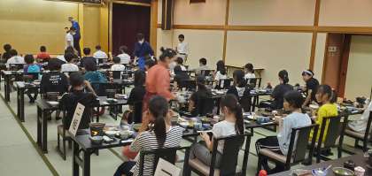 午後6時、夕食の時間になりました。宿舎の方から静かに待てていて素晴らしいと誉めていただきました。