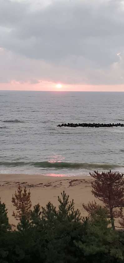 おはようございます。午前5時45分、窓から見える日の出の様子です。