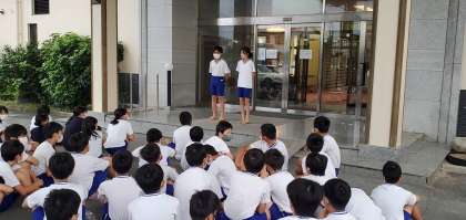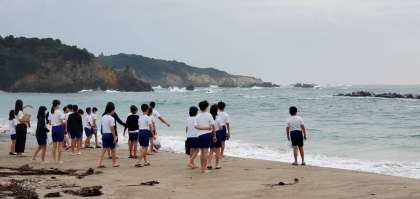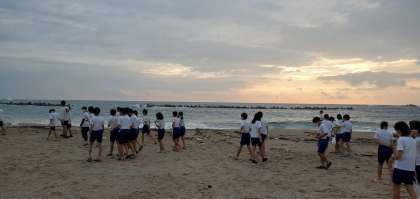午前6時30分、朝の集いの後、浜辺を散策しています。