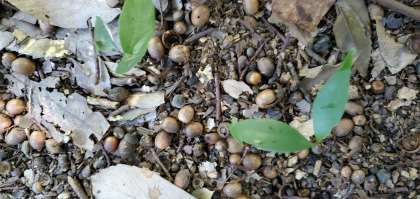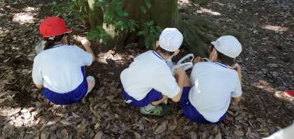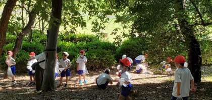 どんぐり拾いをしています。袋いっぱいに集めた子どももいました。
