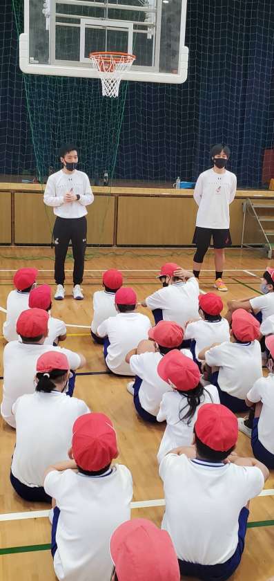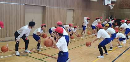 ボールキャッチやドリブル、またシュートの仕方などについて楽しく教えていただき、子どもたちもとても喜んでいました。