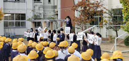 今週はぴかぴか週間です。今日の全校朝会で、環境委員会の児童がみんなで学校をきれいにしましょうと呼び掛けてくれました。