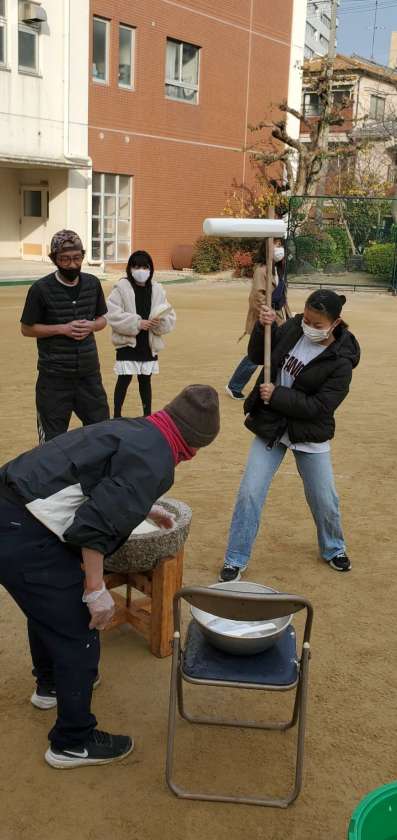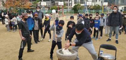 11日の日曜日、吉野小学校で3年ぶりのもちつき大会が行われました。