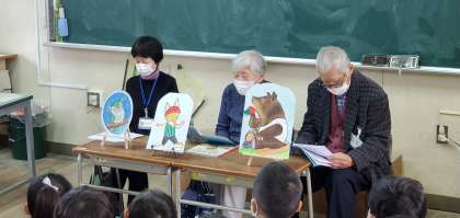 今日の2・3時間目、2年生の教室で図書ボランティアの方をお招きして、おはなし会を行いました。子どもたちが飽きないように色々と工夫してくださっていて、最後まで楽しみながら物語の面白さに触れることができました。