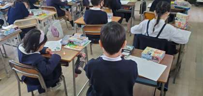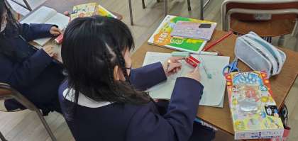 3年生が豆電球に明かりをつける方法を考えている様子です。うまく繋がると、いちらこちらから「きれい!」「見て見て!」なとの声が上がっていました。