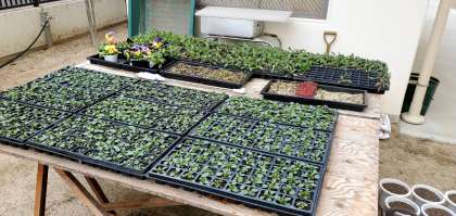 ご覧の写真は、冬に花を咲かせるパンジーやビオラ、またノースポールなどの植物を育てている様子です。