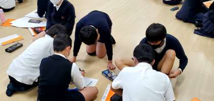 今日の6時間目、多目的で6年生が総合的な学習をしている様子です。これまで学んできた吉野の町のよさを、どのように伝えればよいかを考えています。