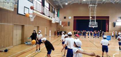 今日の6時間目、5年生が体育館でバスケットボールの練習をしている様子です。しいっぱい練習してしっかり試合でシュートを決めてくださいね。