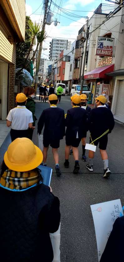今日の午前11時間から、地域や保護者の方々にも参加していただき、町歩きツアーを行いました。