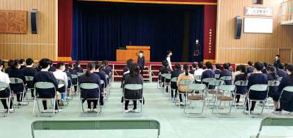 今日の1・2時間目、5年生が講堂のシート敷きをしてくれました。