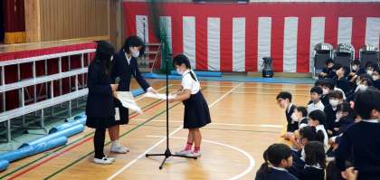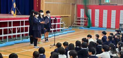 今日の1時間目、令和4年度修了式を行いました。その中で、別の学校に転任されることになった先生の紹介、5年生代表のこの1年を振り返っての発表、また図書委員会からのがんばってたくさんの本を読んだ人やクラスの発表などを行いました。
