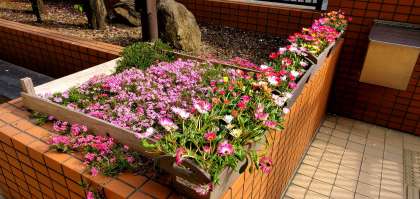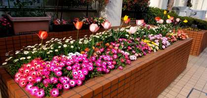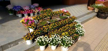 ご覧の写真は玄関先の花の様子です。入学式や始業式が来るのを今か今かと待っている感じがします。