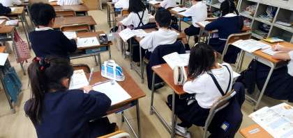 今日の3時間目、3年生が算数の学習をしている様子です。友達の意見をしっかり聞き、ハンドサインで賛成や反対などの意思表示が出来ていて、学び方がしっかりと身に付いてきています。